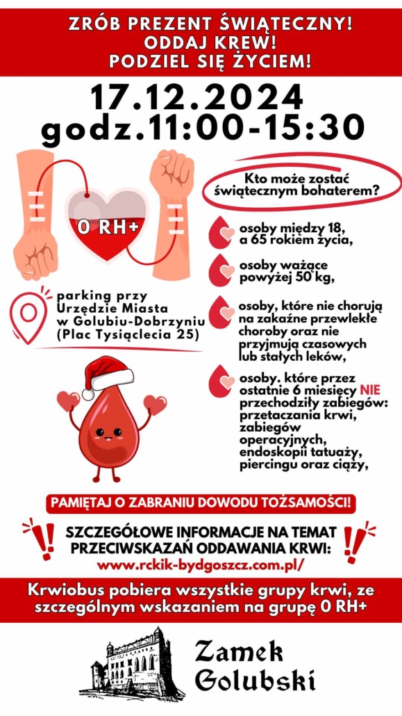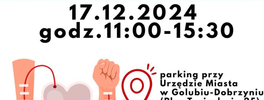 Już 𝟏𝟕 𝐠𝐫𝐮𝐝𝐧𝐢𝐚, 𝐰 𝐠𝐨𝐝𝐳. 𝟏𝟏:𝟎𝟎 – 𝟏𝟓:𝟑𝟎, na parkingu przy 𝐔𝐫𝐳𝐞̨𝐝𝐳𝐢𝐞 𝐌𝐢𝐚𝐬𝐭𝐚 𝐰 𝐆𝐨𝐥𝐮𝐛𝐢𝐮-𝐃𝐨𝐛𝐫𝐳𝐲𝐧𝐢𝐮 (𝐏𝐥𝐚𝐜 𝐓𝐲𝐬𝐢𝐚̨𝐜𝐥𝐞𝐜𝐢𝐚 𝟐𝟓) zaparkuje Krwiobus