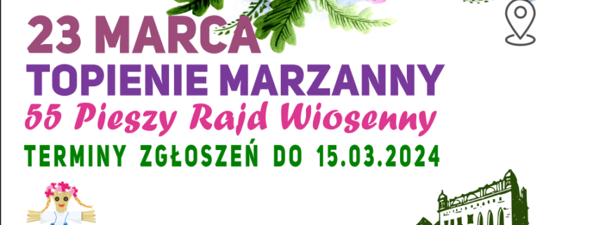 23.03.2024 zapraszamy na 55. Wiosenny Rajd Pieszy – „Topienie Marzanny”.